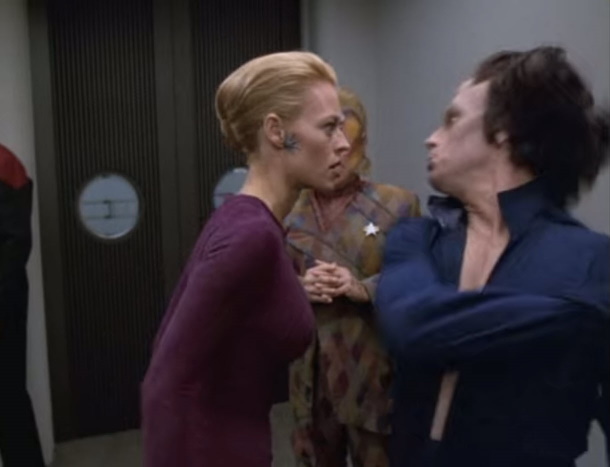 - Seven pisses off Torres after the Klingon Engineer catches the former Borg taking notes about Torres’ and Paris’ love life.