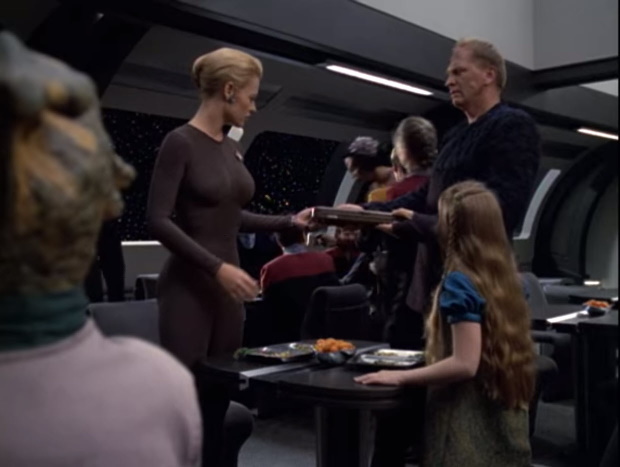 The three part ways after telling Seven how they feel about her, two forgive her, one doesn’t but understands, and Seven is left to her own thoughts. With Voyager back underway, Naomi joins her Borg-Friend in astrometrics where Seven finds herself appreciating the company.