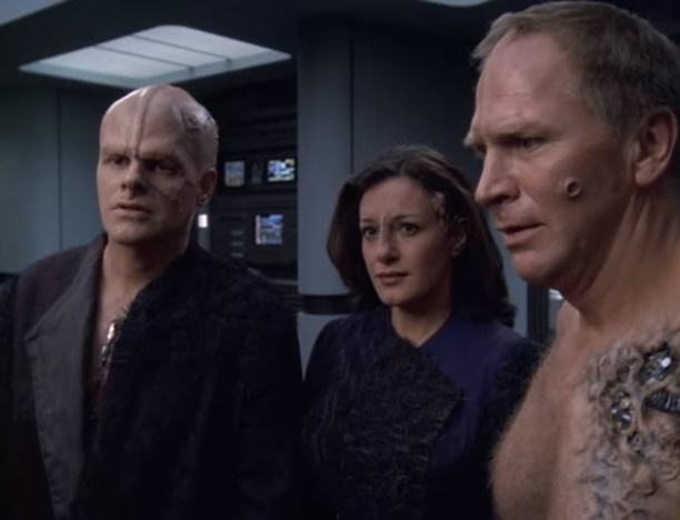 - We see both a Voth and an Evora on the ship.ย I guess the Voth are finally branching out from their Dino friends but the Evora is shocking as they live in the Alpha Quadrant.ย Could Voyager have been this close to a way back home without even knowing it?!