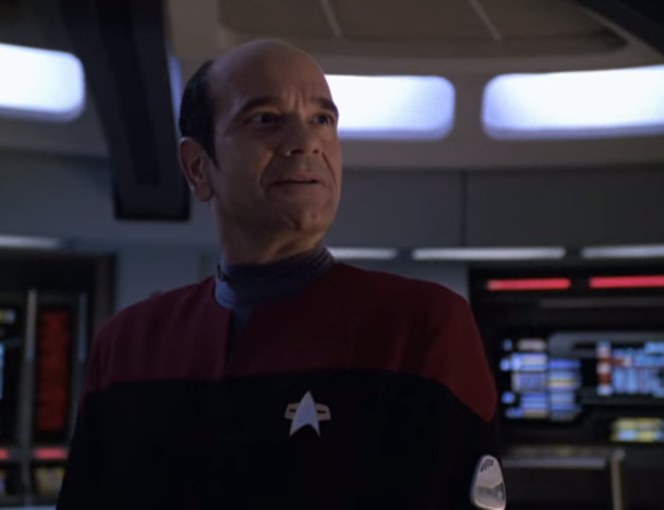 After Torres finds a way to repair the Doctor, Janeway discusses his recent tinkering with his own program. While she appreciates his aptitude she asks that he needs to work with engineering so that he does not destroy himself, depriving the crew of a valuable crew member. She informs him that she has reconsidered his request to expand his program and agrees that she will allow the Doctor to live up to his full potential by working on a command program for him. Returning to sickbay, he finds himself relapsing into a daydream but is soon confronted by Phlox, the alien who has been spying on them. Phlox assures The Doctor that he is real and informs him of what is going on. It seems that the aliens tampering with the Doctor’s program caused the issues but Phlox needs to warn Voyager of the incoming attack.