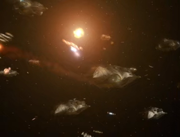 After witnessing the destruction of an alien city with members of their race rushing to stasis pods, we jump ahead nearly 900 years to find Voyager being pulled into a subspace corridor that is filled with debris. Soon they are contacted by ships who assists them in getting out only to discover that they have traveled nearly 200 light years on only a matter of minutes. Janeway contacts the ship and asks for information about the corridor from one of the Turei ship that helped them only to be informed that Voyager is to be boarded in order to erase their knowledge of the corridor. The Turei attack when Janeway refuses to comply.