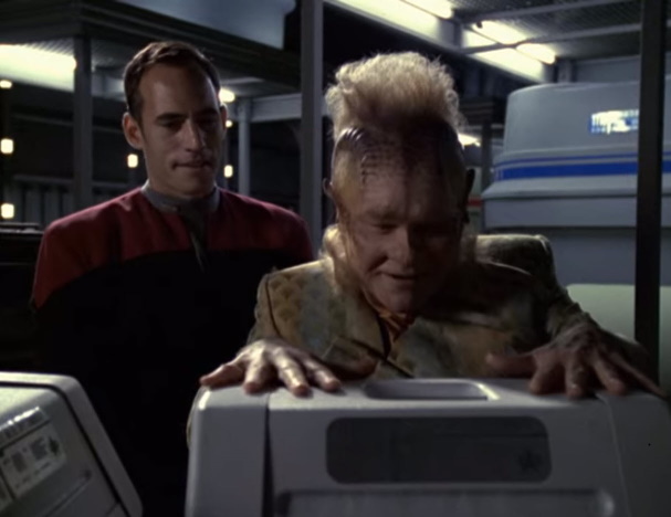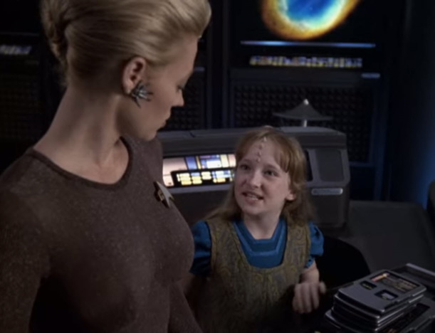 After modifying her regeneration alcove, Seven begins to receive detailed information about the goings on aboard Voyager as she sleeps. Initially this makes her much more efficient by identifying potential issues such as Photonic Fleas that have taken up residence in one of the replicators. However, not long after the crew meet with an alien named Tash who claims to have constructed an interstellar catapult, this information becomes a problem.