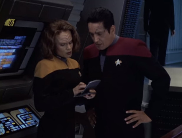 Initially Seven begins making connections that make sense, that the catapult is constructed of the same tech used by The Caretaker giving them caution as to the true nature of this new alien. Before long Seven begins pulling more and more data eventually coming to the conclusion that Voyager was sent to the Delta Quadrant on purpose and that Tash is there to send them back home in order to complete their mission. Concerned, Seven reports this to Chakotay, urging him to delay use of this catapult as she believes that the Maquis Crewmembers may be in danger upon their return to the Alpha Quadrant.