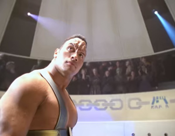 Seven of Nine is kidnapped and forced to participate in a blood-sport only to face none other than The Rock himself, okay, well, an alien played by The Rock.
