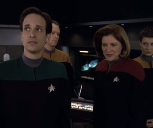 Despite the rather abrupt recap, this is actually a really solid Janeway-centric episode while also giving us a peek into some of the crew-members we haven’t seen but have been vital to the ships functions. Much like the STNG episode Lower Decks, and it’s animated namesake, this episode focuses on the underdogs, the one’s that, as Janeway puts it ‘have slipped through the cracks’ and boy does it deliver.ย ย Janeway has been a solid Captain but, with everything that has been going on in the past six years it is not surprising that she has not had a chance to get to know everyone on board personally.ย I mean, even under good circumstances that would be a hard thing to do but the fact that Janeway is willing to try says a lot about her character.ย Janeway cares and that in and of itself is something not many ships can claim about their Commanding Officer.ย