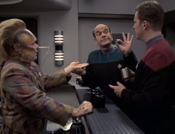 Live Fast and Prosper is not an episode that pushes the overarching story forward or even builds much in the way of character development but man is it not a fun episode through and through.ย To see the crew of Voyager, particularly Tom Paris and Neelix, being conned themselves is tremendous, especially with the fact that these two have a shady past themselves. Although much of the story deals with Janeway and crew attempting to repair the damage done by Dala and her team, the subplot involving Tom and Neelix believing they have ‘gone soft’ is one of the best B story lines we have seen in a while.ย They are truly worried about losing their touch and actors Ethan Philips and Robert Duncan McNeil do a tremendous job making it feel real through and through.ย