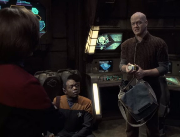 After explaining the situation to the Miner, Janeway makes the connection between the con artists and Sister Dala revealing that Neelix and Paris had been conned themselves resulting in the loss of a significant portion of the Delta Flyer’s database. So, after what comes down to a fetch quest wit Voyager tracking down the con artists through their various schemes, the crew find Dala and try to get her to turn on her fellow criminals. Dala ultimately escapes with the Delta Flyer which turns out to be a ruse if it’s own as Paris and The Doctor quickly replace Dala with the Doctor and capture her partners in the process.
