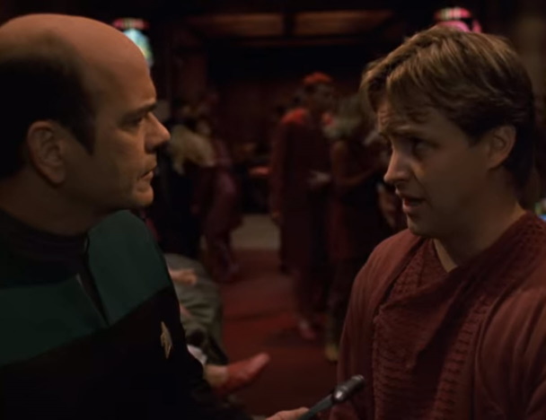 The story is a basic one. The Doctor is kidnapped and finds himself working at a hospital where patients are treated based on their social standing, while Voyager tries to track down the Doctor’s thief and reclaim him. Throughout the episode the Doctor is challenged to work within the confines of this new system while also not wanting to betray his oath as a Doctor. The Doctor breaks the rules, poisons the administrator in order to teach him a lesson about the corrupt system. Voyager tracks down the thief and, after Neelix poisons him, the Thief provides the Doctor’s location and Voyager rescues their friend. Before he leaves, The Doctor’s efforts pay off when the Administrator sees how they can improve their rigid system for the better. Returning to the ship, the Doctor is concerned that he has been corrupted and that his ethical subroutines were damaged. Seven assures him that he did what he needed to in order to survive as the needs of the many outweigh the needs of the few.