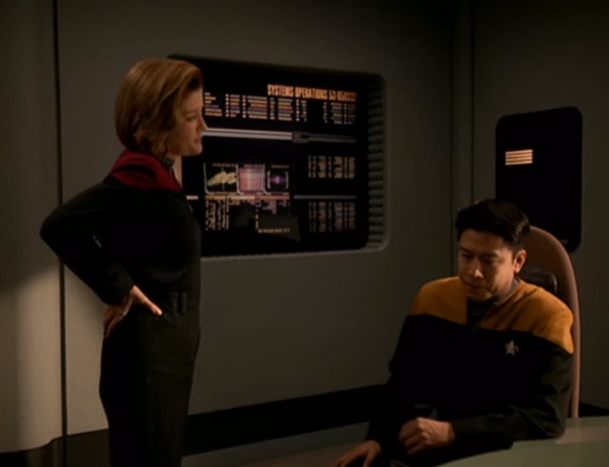 I love The Eternal Ensign Harry Kim, especially when he has a chance to be in command despite his clear inexperience. The thing is, after seven years on a Starship and having gone through so much, well, you would think he would have a better grip on command itself. Honestly, this episode shows the main reason Ensign Kim has never been promoted, he hasn’t really learned anything but how to keep his head down in all the time he has been on board. This is a really sad revelation but finally gives us a clear answer to this characters lack of promotion despite, or maybe because, of his rather clean record this far.