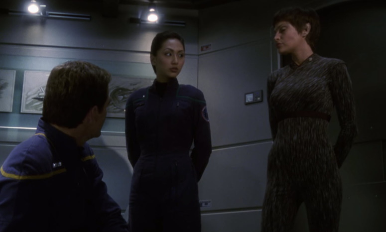 - Hoshi releases her pet Sluggo on a planet allowing it to survive on it’s own instead of cooped up on a starship.ย She tells her that she will do just fine, indicating that Hoshi herself is finding her place.ย Sadly, Dr Phlox will have to find something else to feed his bat.