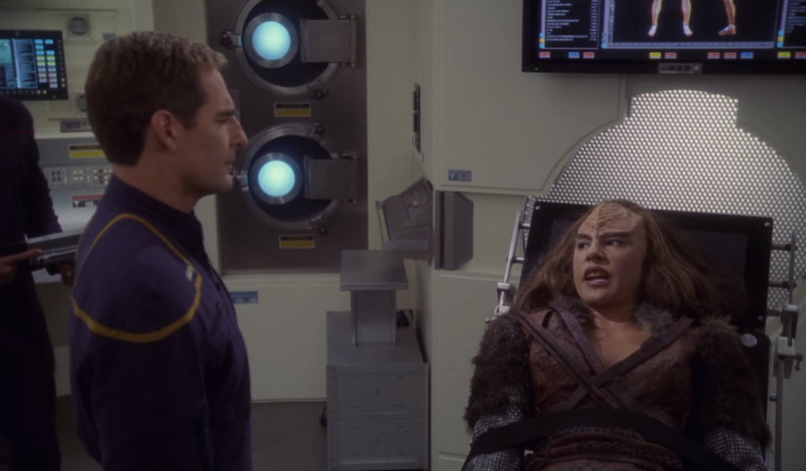 In the end, Enterprise is able to save the Klingon vessel once it is revealed that the Klingons raided a Xarantine outpost and became ill on the Xarantine Ale. Archer is able to convince Bu’kraH to assist in saving her crew so that they avoid a dishonorable death. After handing the Klingon Vessel over to Bu’krah, Archer is forced to talk it’s Captain down from attacking convincing him that to do so would be fatal. Soon the Enterprise continues on its way with the away team taking some down time in the decontamination chamber.