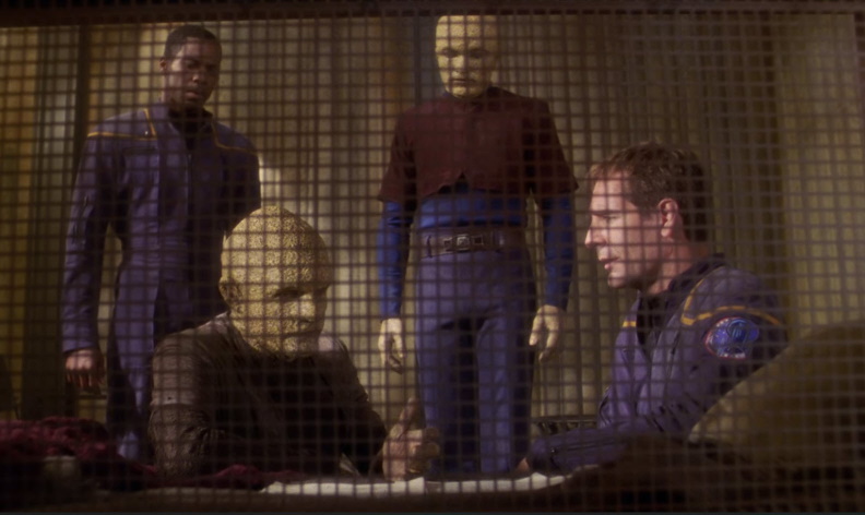 Taking this premise, Detained explores the idea that, while we were introduced to the Suliban as enemies at the start of the series, not every Suliban is a member of the Cabal. The beauty of this episode is that it forces not only the characters but also the viewers to reconsider their viewpoint of a species that we have known as an enemy from the very start. It’s not often that a series gives viewers such an impactful and intense situation to consider but Detained does just that.