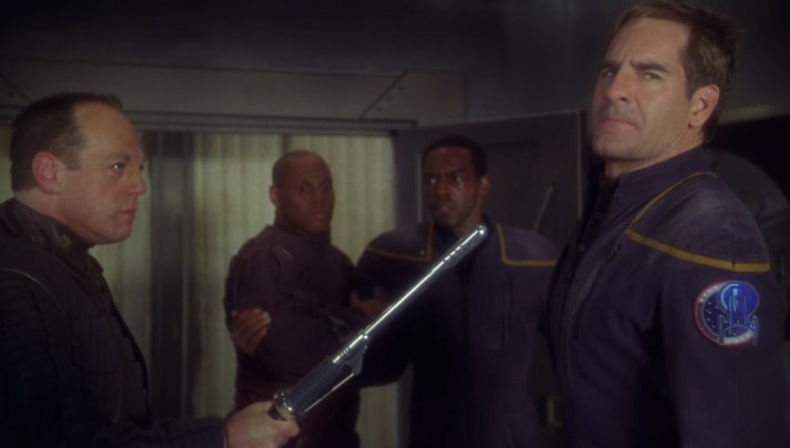 The other thing that makes this episode iconic among scifi fans is that it reunites two actors from another beloved scifi series, namely Quantum Leap. You see, Scott Bakula (Archer) and Dean Stockwell (Grat) once worked together as Bakula travelled through time ‘fixing’ things with Stockwell as his holographic partner. While they don’t reunite as friends in this particular instance, it was cool to see them together again.