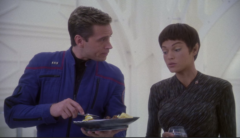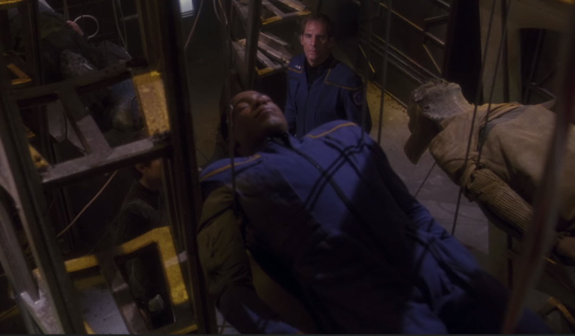 Mayweather’s death is a significant moment for this episode as it seemed to be an actual event, not just a way for the station to kidnap him. After his death we really get a chance to see just how much the crew had come to love Travis Mayweather, from Hoshi visiting his body in sickbay to Archer and Reed discussing the letter he had been writing home. I loved that there was a legitimate sadness in the crew that could really be felt and, when it is discovered that Mayweather is in fact alive and well, you can almost feel the relief.