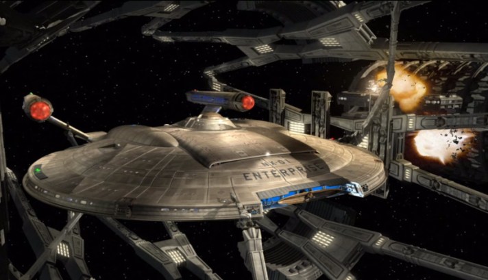 As Enterprise heads off, the ruins of the space station begin to repair itself…
