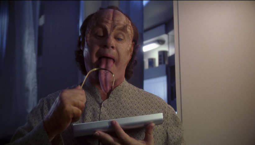 If you have had a four legged companion of any sort, this episode really hits home. While Porthos isn’t the first pet in a Star Trek series (Picard had a fish, Data had a cat and O’Brien had a spider), his regular appearance on the series makes him more of a costar to the rest of the cast than any other animal in Star Trek. So, needless to say, when the little fella gets sick, yeah, it’s like one of the bridge crew is nearly dying and boy is it impactful.