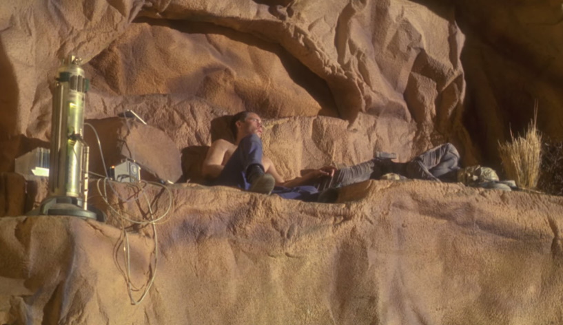 After being attacked by an unknown ship, Trip Tucker crashes on a planet and tangles with an Arkonian pilot named Zho’Kaanand the two of them begin a cat and mouse game capturing one another until it is clear that they need to make amends and work together in order to survive. The catch here, well, when the sun comes up the planet gets hot…real hot and they will die. Meanwhile Enterprise is determined to find a way to save Trip but can’t detect him because of interference in the rocks and, of course, the aliens who are also searching for their own missing crewmember.