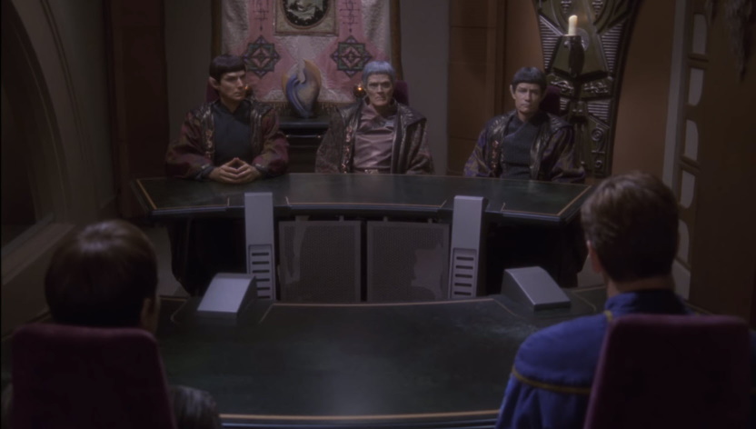Character wise, I love how T’Poll is unwilling to testify that she was forced into a mind meld as it would only validate the Vulcan’s hate against the Mind Melding Minority. This really speaks to her character and her determination to be an ethical and honorable person. While she herself is a minority in her own culture, it is amazing to see how many of her own traits become common place among other Vulcans in the future.