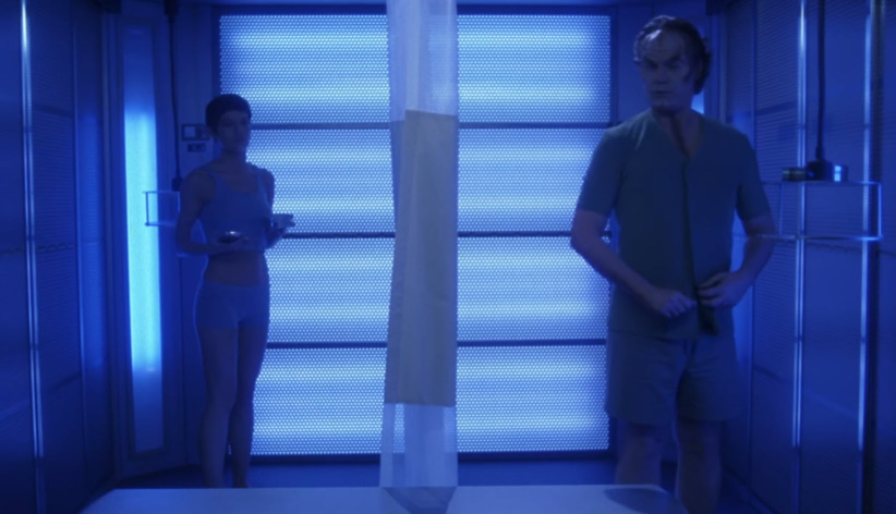 Then there is the ‘Horny Vulcan’ story.ย Holy hell is it just a standard for every Star Trek series with a Vulcan on board to have the ‘oh my God Pon Farr’ story?ย ย I kinda understand it happening on Enterprise as it’s a rather ‘new’ thing, but still, this entire sequence felt like a way to get Jolene Blalock in her underwear acting like a horney teenager.ย Don’t get me wrong, I find her very attractive, but this just felt demeaning and completely unnecessary.ย I can just see Rick Berman and Brannon Braga writing this story going…we need a B plot….what have we not done yet?ย ย OH, we have a HOT VULCAN on the show, it’s PON FARR TIME!!ย ย To her credit, Blalock does a tremendous job depicting the struggle in controlling her ‘sexual urges’ but I really wish they hadn’t put her through this in the first place.ย