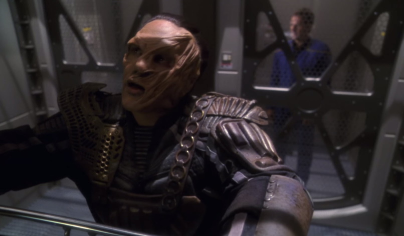 Soon an alien craft approaches Enterprise and begin a boarding raid. When the Enterprise crew fight back, the aliens leave but not before stealing a considerable amount of supplies but not before one of them is knocked unconscious and is left behind. After taking an inventory, it is discovered that much of their antimatter storage pods have been stolen which means Enterprise will be stranded in about a months time. Archer finally meets with the prisoner who has been identified as an Osaarian and soon learns that Orgoth believes Enterprise will not last long as the Expanse is not a civilized place.