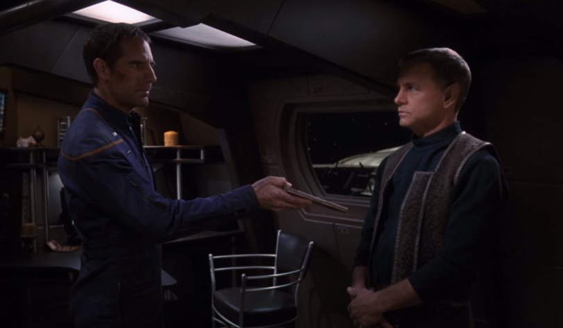 Enterprise finds the subspace corridor that is meant to take them to the Xindi Super Weapon but stop when another NX class starship is detected on scanners. They are surprised when the ship turns out to be themselves but from the future. Captained by a man named Lorian, the second Enterprise requests that Enterprise not enter the rift until they can explain.