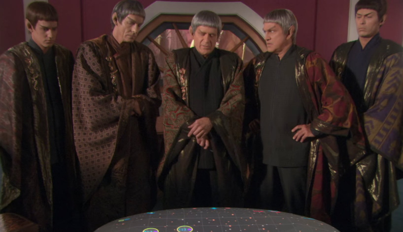 In the end it is revealed that one of the High Command, V’Las, was really a Romulan in disguise who was attempting a re-unification of Romulus and Vulcan, only in a more underhanded way.