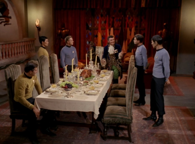 Thinking it’s over, Enterprise continues on only to encounter Trelane again, who kidnaps Kirk to face trial so that he can be executed. Kirk gives Trelane a challenge by conducting a hunt, which Trelane takes literally and begins hunting Kirk. Trelane captures Kirk and Kirk realizes that Trelane has no intentions to do harm, just wants to play with Kirk and his crew like toys. Soon Trelane’s parents arrive and take him back returning Kirk to Enterprise and explaining that Trelane is just a child who clearly needs some discipline.