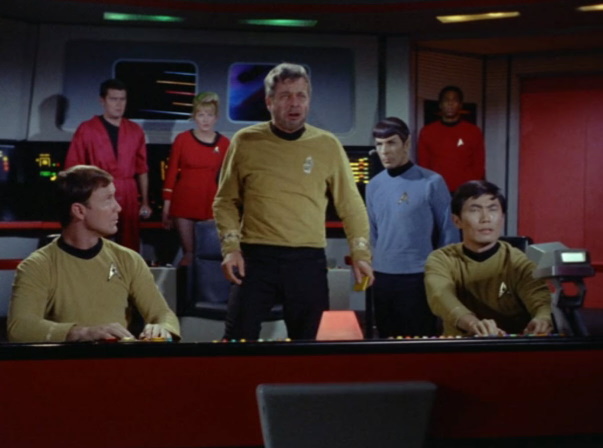 - Uhura and Chekov are mysteriously absent in this episode. No explanation given.