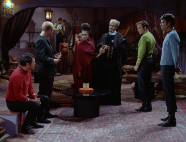 While the story itself is an interesting one, the idea that Jack the Ripper was in fact an alien being traveling around killing people, the episode itself is so hedonistic that it even calls itself out on it. I’m not kidding, in the opening moments McCoy himself mentions that the civilization they are visiting to ‘help Scotty’ is quite the ‘hedonistic society’. However, this does not prevent McCoy from partaking in it.