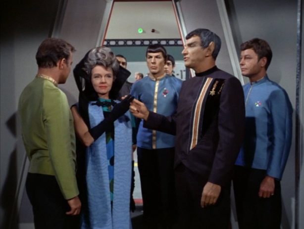 Soon it is discovered that Sarek has a rare disorder that could kill him and it is up to the estranged Spock to save his life with his own blood.ย As Spock tries to help his father, there is still a matter of a murderer on board but things get more complicated when the ship is attacked by an unknown enemy.ย Kirk tangles with one of the Andorians only to be stabbed in the chest just before beating him. The Andorian is soon revealed to be a spy for the Orion Syndicate and one of the Orion ships reveal themselves attacking the Enterprise. After a brief battle, the Enterprise outmatches the enemy vessel much to Andorian Ambassador Thelev’s disappointment.ย Thelev takes his own life in an attempt to not be caught and interrogated, and Sarek pulls through.ย ย ย