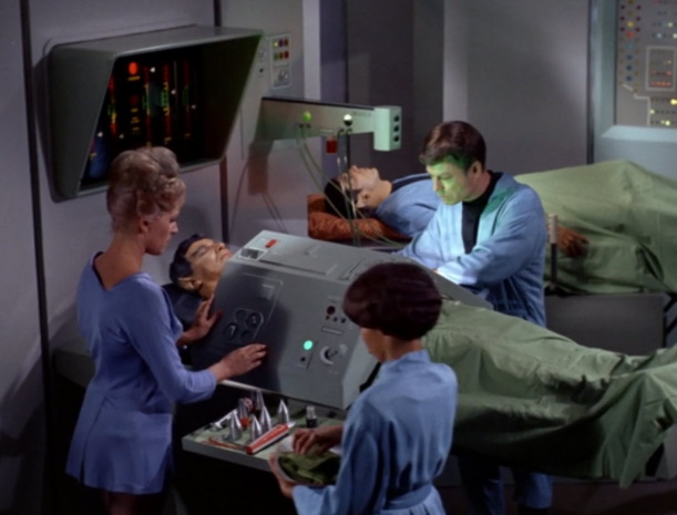 - This episode marks one of the few times we see McCoy performing surgery on the series.